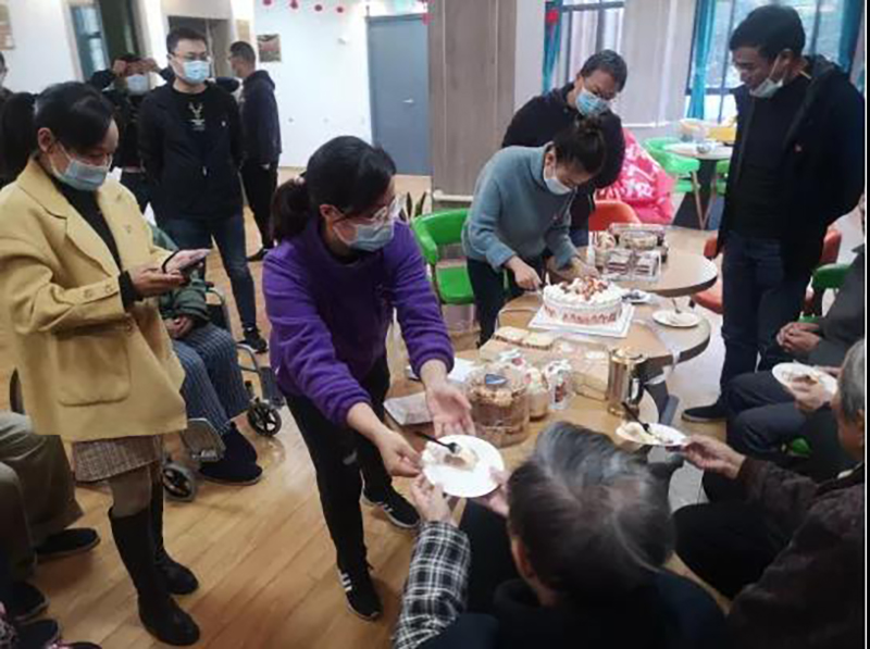 敬老院負(fù)責(zé)人熱情接待了黨員們,帶黨員們參觀了院內(nèi)環(huán)境,介紹了敬老院的大概情況,隨后到了老人的下午茶時(shí)間,黨員們送上準(zhǔn)備好的蛋糕、面包等食物,與老人們共用下午茶。老人們對(duì)黨員的到來表示歡迎,對(duì)黨支部的慰問表示感謝,紛紛表示黨員們的到來,讓他們感受到黨的溫暖。