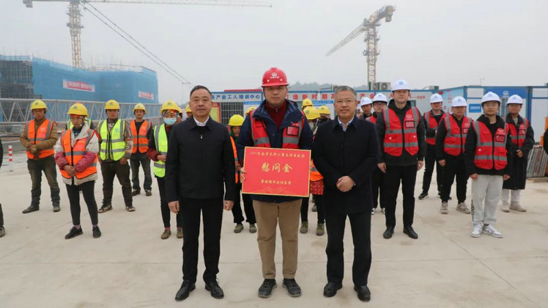 在景德鎮(zhèn)國際陶瓷博覽交易中心(二、三、四、五標段),余笑兵為一線工人們送上新春祝福及新年慰問,并對他們堅守崗位表示感謝。他表示,春節(jié)期間,項目負責人全力做好春節(jié)生活保障,要營造“家”的溫暖,加大對外來務工人員關愛,確保留崗過年年味不缺、溫情不減。同時叮囑大家注意休息,勞逸結合,爭取在新的一年里,跑出全年加速度,奮力奪取“開門紅”。