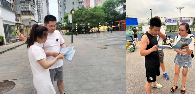 新城公司安排市場部專業(yè)人員與公司其他各部門人員輪流下班后前往人流集中的公園廣場等地點,多形式、多維度介紹體育場館各類項目,包括游泳培訓、健身年卡、籃球、羽毛球、舞蹈等。一線員工利用對項目細節(jié)的深入了解,通過實地示范與一對一交流的方式,向潛在客戶詳細介紹各項目內容及我公司優(yōu)勢。后端人員負責現(xiàn)場解答使用問題并收集用戶反饋方便后期隨時跟進調整。